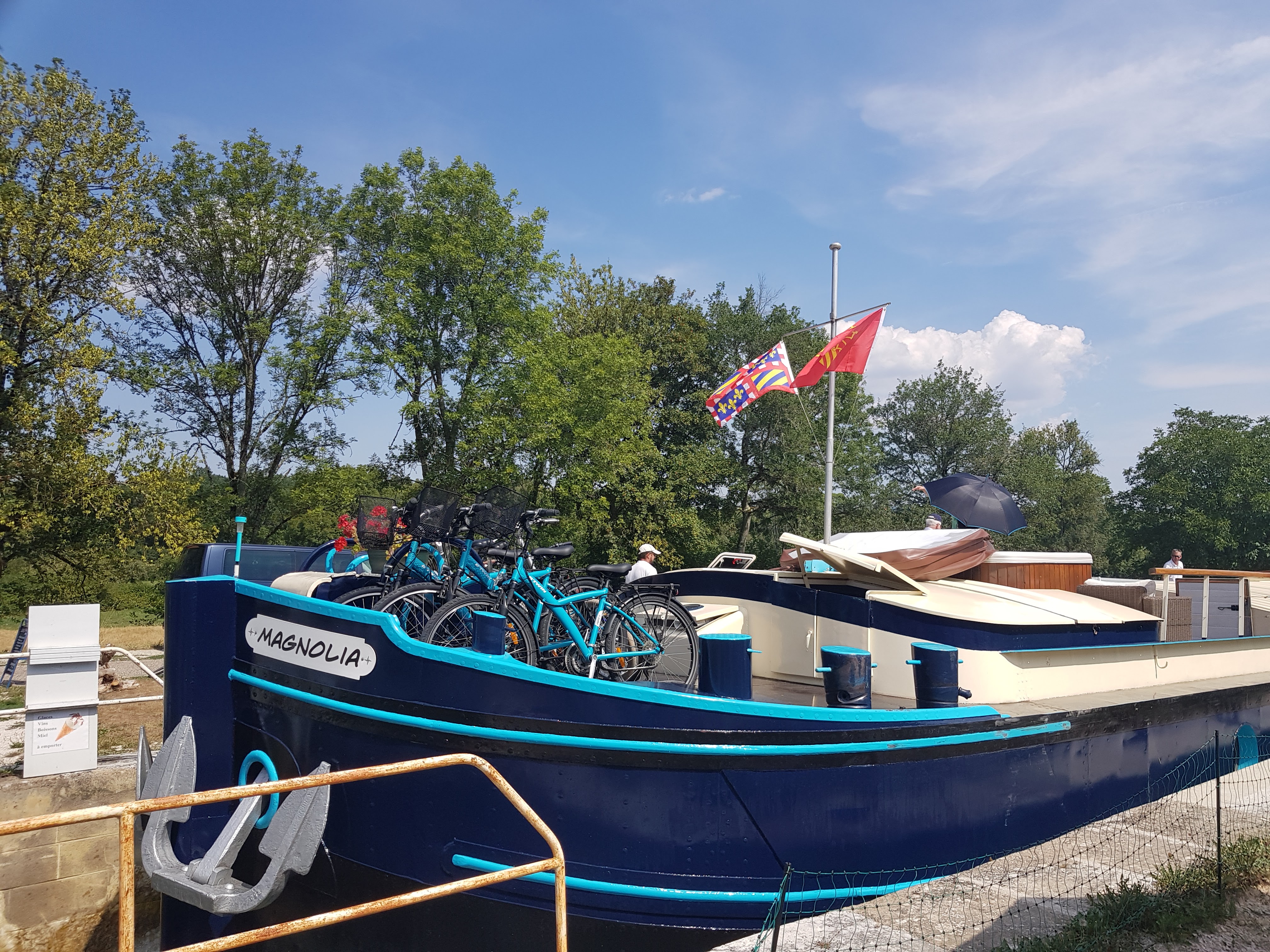 Écluse sur le canal de Bourgogne avec un accueil chaleureux et de bons plats le midi